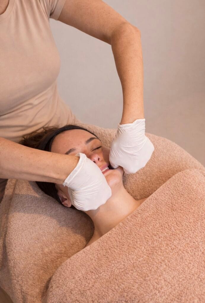 Spanning in het gezicht ontstaat vaak ongemerkt. Veel mensen klemmen hun kaak, knarsen met hun tanden of houden onbewust spanning vast in wangen, slapen, nek en schouders. Dit kan zorgen voor een vermoeid gevoel in het gezicht of een gespannen kaaklijn.